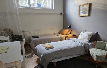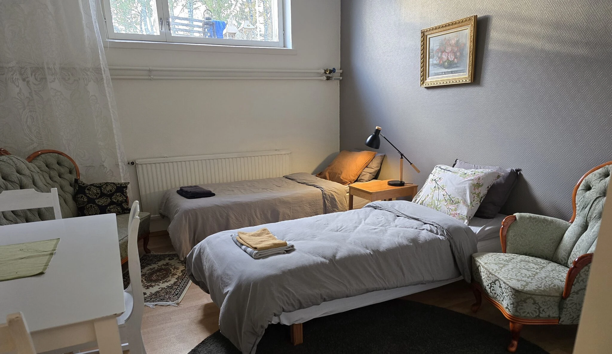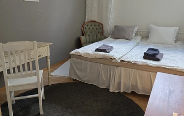 Vuoteet kahdelle hengelle, sisältäen liinavaatteet ja pyyhkeet