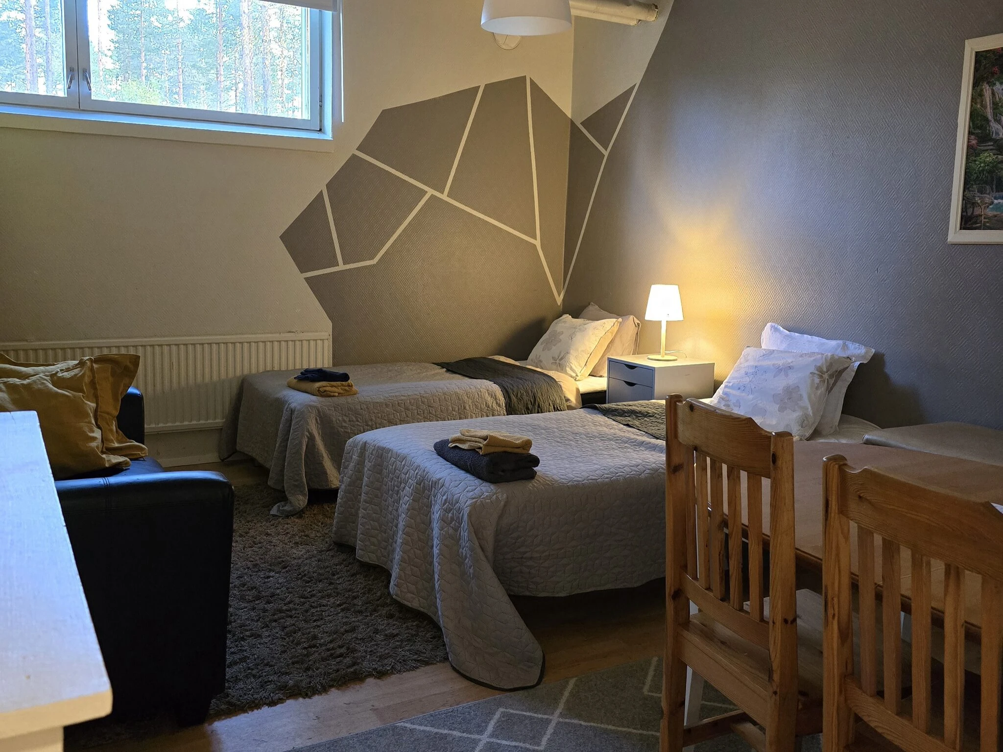 Lukittava huone, oma avain huoneeseen. Hyvin ääntä eristävät huoneet, takaa rauhallisen majoituksen.