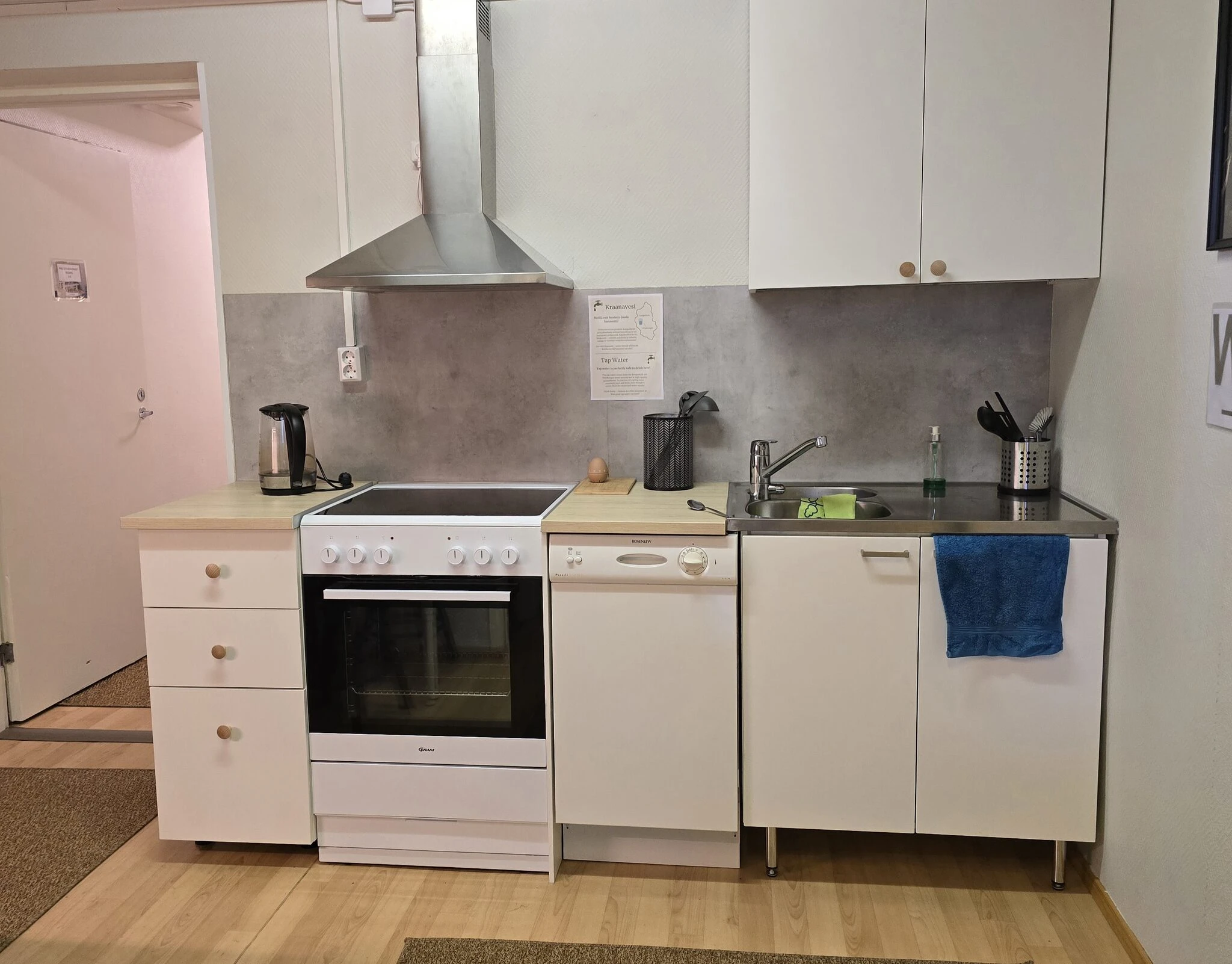 Yhteiskäytössä oleva, täysin varusteltu keittiö ruoanlaittoon