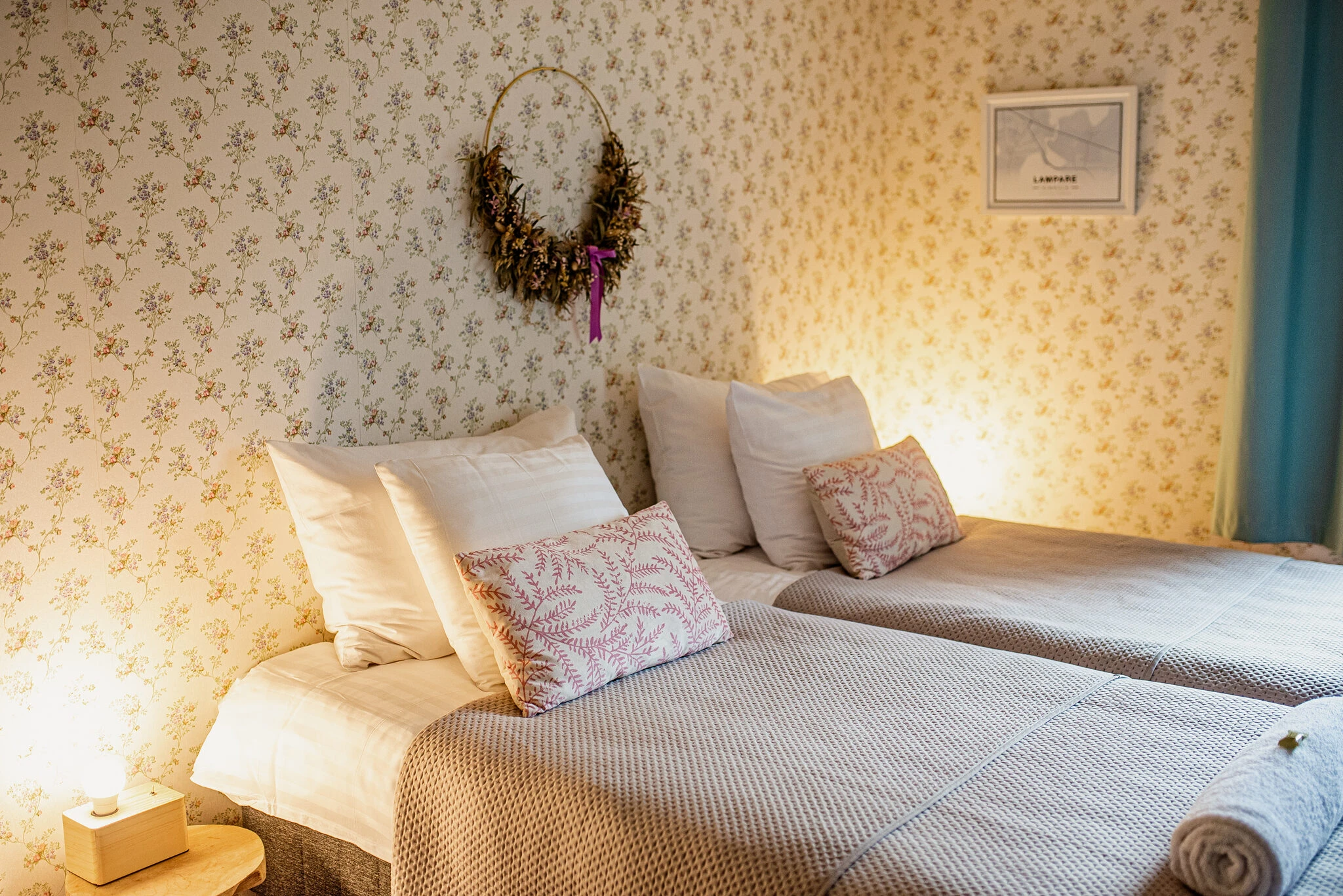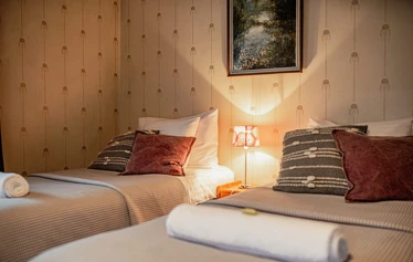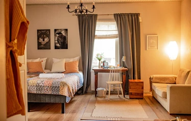 Kammarilla on viisi viihtyisää kahden hengen huonetta, joissa majoitut mukavasti lyhyellä tai pidemmällä vierailulla. Huoneissa on erilliset vuoteet, ja majoitukseen sisältyvät liinavaatteet, pyyhkeet sekä vapaa pääsy yhteiskeittiöön ja oleskelutiloihin. Pihapiirissä on lisäksi laavu, nuotiopaikka ja puulämmitteinen sauna, jotka täydentävät luonnonläheistä majoituskokemusta.
